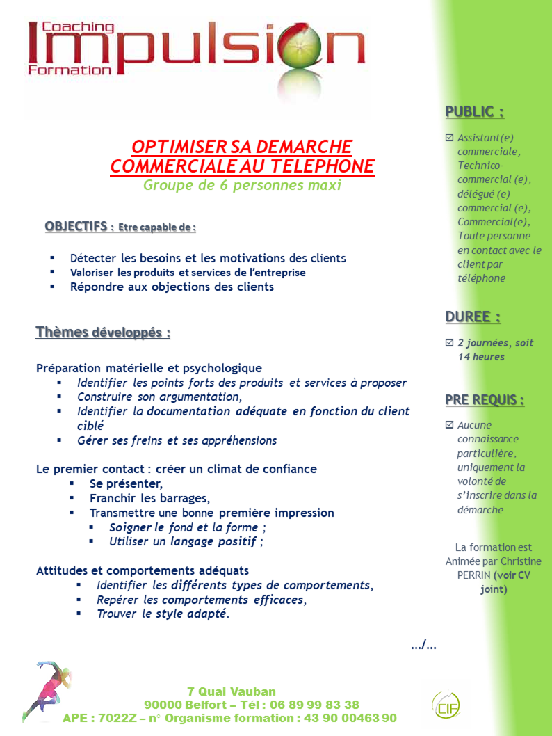 OPTIMISER SA DEMARCHE COMMERCIALE AU TELEPHONE ET PRISE DE RDV Publié parperrin marine15 Oct, Publié dansNon classé Partager : Cliquer pour partager sur X(ouvre dans une nouvelle fenêtre) X Cliquez pour partager sur Facebook(ouvre dans une nouvelle fenêtre) Facebook J’aime chargement… Similaire