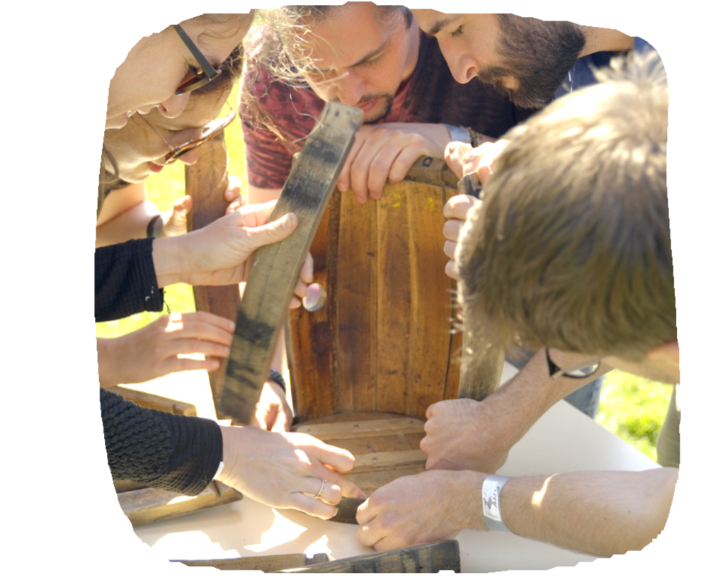 Découvrez le métier de vigneron à travers différents défis : le roulé de tonneau, l’étiquette collaborative, les vieux outils, le montage de tonneau et d’autres surprises !